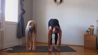 Workout Yoga Exercise Together For The First Time.