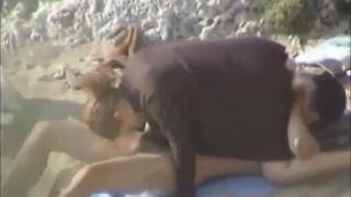 Ella monta su polla en una playa