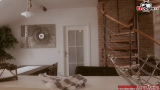 Puta alemana flaca con pelo marrón se folla primero después del trabajo