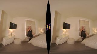 La bomba rubia caliente se desnuda de su traje sexy mientras que masturba su