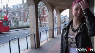Puta de pelo rosa parpadeando en público*