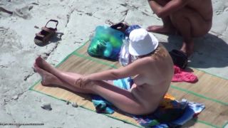 Chica desnuda chupa en la playa en las rocas