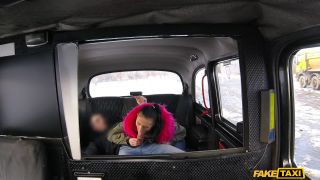 No me sentía bien hoy, así que me escapé en el asiento trasero para tomar una pequeña siesta, entonces esta señora abrió la puerta y me comenzó a rogar que la llevara a su reunión. Le dije que me dolía la cabeza y que iba a tener que encontrar otro taxi o esperar, pero ella no quería aceptar un no por respuesta. Ella se subió y cerró la puerta, y comenzó a tocarme, cantando despertar, despertar, y antes de que lo supiera, ella había sacado mi polla de mis pantalones y comenzó a darme una mamada! Resulta que era mi día de suerte, porque esta chica Nicole estaba muy caliente. Como estaba dispuesta a hacer cualquier cosa para un paseo a su reunión, saqué sus grandes tetas de su camisa y le follé su dulce coño outie por detrás, luego la llevó a donde quería ir... ¡con esperma en su pelo!