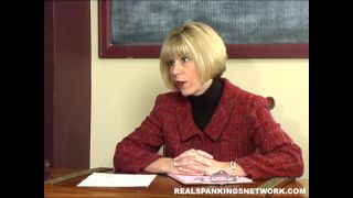 Jenna se acerca al frente de la clase y, rudamente, le mete su papel de prueba terminado en la cara de la Sra. Burns. La Sra. Burns le ordena que vuelva a su asiento y comience a estudiar para sus otras clases. Jenna comienza a tener una actitud, argumentando que debería poder ir porque no tiene otro trabajo. La Sra. Burns ve que Jenna está teniendo un problema con las reglas de su clase, así que le ordena que se ponga al frente para una cierta disciplina. Jenna está doblada sobre el escritorio y le da una fuerte correa hasta que está llorando y apologética.