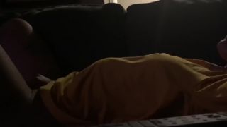 Morena caliente chica viendo teléfono porno y digitación coño en el sofá. cámara oculta with thefantazy.com
