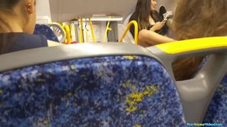 Cabello largo morena australiana chica arriba de la falda en el transporte público.