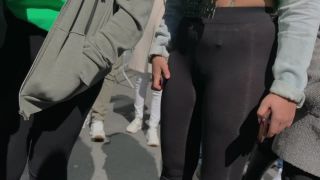 Puedes estar seguro de que cada hombre que vio aquí también estaba mirando hacia fuera su gran trasero tambaleante, especialmente porque su tanga de cuerda era totalmente visible cuando ella sale de la sombra. Sol brilla a través de sus leggings negros y revela un culo fantástico y el tanga más pequeño que nunca has visto, como si estuviera hecho de un encaje de zapato.