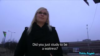Estaba merodeando junto a un supermercado cuando vi a una rubia guapa en gafas salir con algunas compras. Me acerqué a ella para ver si necesitaba ayuda con sus compras. Le dije que estaría feliz de cargar con su carga si respondía unas preguntas por mí. Le dije que tengo contactos en una agencia de empleo de primera y que podía conseguirle un trabajo de ensueño....por un precio por supuesto... ella solo necesitaba chupar mi polla y luego tener su coño follado por mi gran polla.