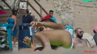 Vi a dos chicas tomando el sol en topless juntas que asumí que eran más que buenos amigos. Ambas tienen tetas increíbles y en la primera parte nos centramos en la morena se sentó a la derecha.