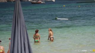 Wow, mira esta hottie. Me las arreglé para grabar más de 9 minutos de este. Primero la vemos sentada junto a una pared antes de que se mueva hacia el mar con sus amigos que también son bastante calientes. Después de su pequeño amigo también se queda topless.