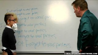 La tarea de Devon de escribir líneas en el tablero ha ido terriblemente mal, ya que parece que no puede seguir instrucciones. Bragas en la boca, ella está doblada y atada en su fondo desnudo, luego le dijo que las pusiera y regresara a clase.