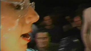 Esperma salpicando en una cara de mujer, semen goteando del cuerpo, bebiendo el esperma de los hombres