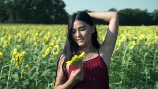 Linda asiática Kimiko pasea por un campo de girasoles, su lenguaje corporal con gracia seductora. Sudando su largo cabello negro y sonriendo dulcemente, se levanta su vestido de verano y desliza sus bragas sobre su curvo culo. Desnudándose, pasa las manos sobre sus pechos alegres para que se muevan, sus pezones se endurecen hasta su tierno tacto. Se sienta en un reclinado junto al lago, muslos delgados se separan para revelar su coño afeitado, dedos explorando su suave piel.