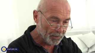 El viejo abuelo caliente golpea a un adolescente rubia caliente en el sofá: Masha Ray (22), Nico N. (63)