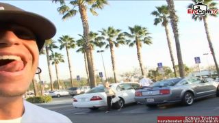 La rubia zorra con grandes tetas seduce a un tipo en la playa nudista para Spontan.