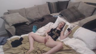 Hambriento caliente rubia chica dedos coño en la cama mientras que ver porno teléfono - Masturbación with thefantazy.com