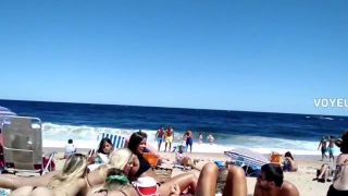 Walking around a circle of stunning babes on beach Nudism!