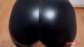 [GetFreeDays.com] Ass job in shiny leather shorts with a messy cumshot on big booty Porn Leak October 2022