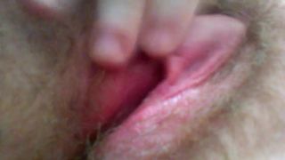 Hairy girl fingering big clit till orgasm