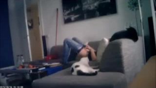 horny girl fingering pussy till orgasm on the couch. spy cam