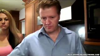 Finally, Monica is bent over and spanked with the belt. Betty demands to see the results of the punishment, to be sure the point was made. The girls drop their jeans and bend over. They are then placed in time out.