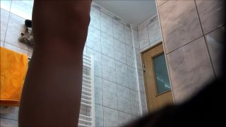 slim girl undressing and shaving armpits in the shower room. hidden ca ...