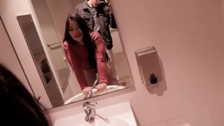 Asian slut fucks in public bathroom with no shame