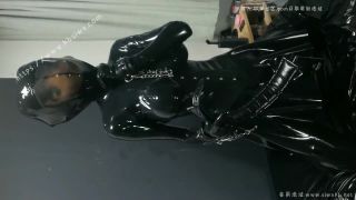 Latex catsuit bondage of rubber doll