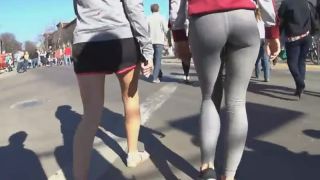 Despite the fact this hot teen girl is walking like she got two left feet, you'll adore her sweet round ass in those grey tights, and who knows, you just might fancy her friend as well. Seriously, she looks awfully clumsy when she walks but that problem would vanish when she lies down and spreads legs, right?