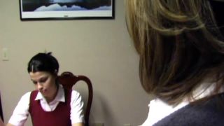 Ms. Burns sends Kelly along with a pink slip to see Kailee for her punishment. Kailee bends her over and gives her a strapping on the bare.