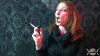 I was feeling so sexy in this sweater, I just had to smoke a cigarette while feeling its softness. I take a Camel 99 out of the pack and put it to my mout. I then grab some matches and light one, puffing on the cigarette to make sure it is lit. I then take a long drag, fully enjoying the cigarette, making sure I really taste it. I snap inhale, and exhale huge plumes of smoke. I smoke the whole cigarette until there is nothing left and then put it out in my vintage crystal ashtray