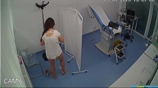She is a bit chubby but I'll forgive her that because her vagina is neatly trimmed and groomed to the point where it would be a pleasure to lick it all over. She got spied during her gynecological examination in that unflattering pose with legs spread wide on the checkup table.