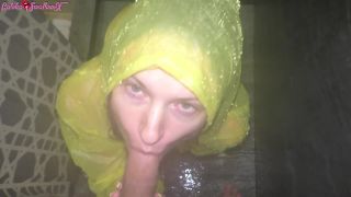 [Amateur] Horny Girlfriend Offered Blowjob with Raincoat In Shower With Cum On Face with thefantazy.com