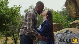 Rebecca sucks the cock and gets fucked by a black guy in various positions including standing doggy, doggy, cowgirl.