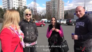 Todays action started as a mundane Takevan crew cigar break near a shopping mall quickly turned into a promising action when we caught not one, but three young girls ( blonde / blonde / black haired ) at once. Only one of them seemed promising and cocky enough, to show us her boobs, while the others were sort of frigid...