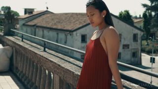 Stunning May Thai enjoys the sun on her balcony, then invites you into her bedroom for some more intimate pleasure. Smiling seductively, the Asian beauty takes off her dress to reveal her gorgeous body, dark nipples stiff with arousal. She licks her fingers and strokes her shaved pussy sensually, gasping as she sinks two fingers into her tight slot. Kneeling on the bed for a sensational rear view of her sexy ass, she masturbates avidly, then lies back against the pillows as she drives herself to an intense orgasm, her petite body trembling with bliss.