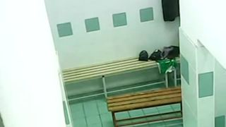 Hidden camera in locker room catches teen undressing and other teens waiting to take shower.
