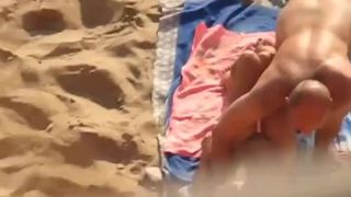 Seeing how weird of a combination these two make, you gotta ask yourself whats the story here. My guess is that this older bald guy is having a vacation with his mistress and she is one foxy blonde with big fake tits. Baldie fucks her right there on the beach and a voyeur spied them.