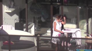Apartment window under surveillance by window voyeur catches asian woman dressing,