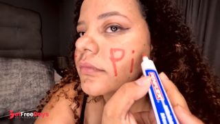 BBW colored girl DEEPTHROATING A dildo after writing dirty words on her whore face